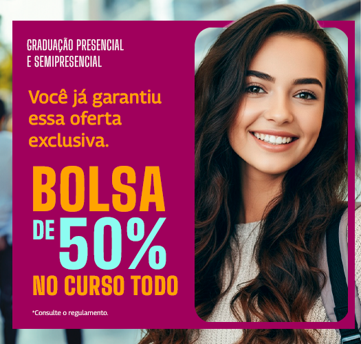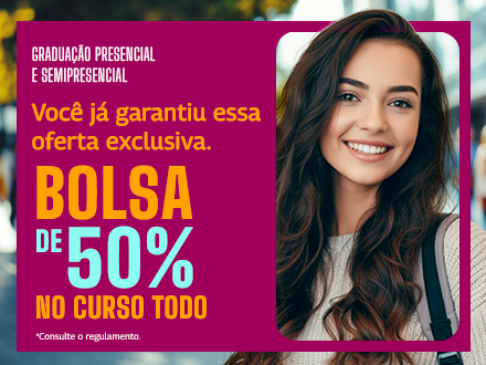 Sua bolsa vai ser aplicada só na etapa de matrícula. Para saber mais, consulte nosso regulamento.